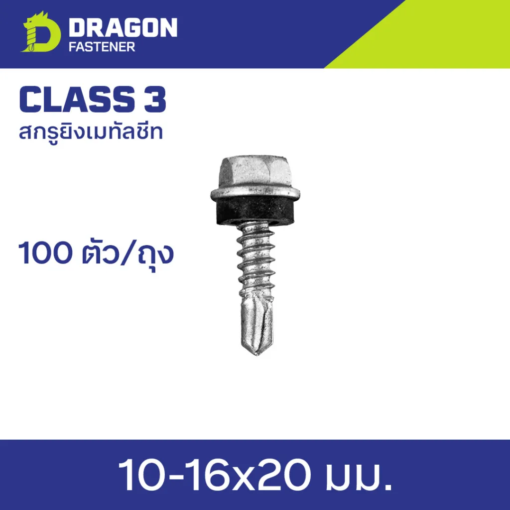 นี่คือ “ฮีโร่” ตัวจิ๋วที่ขาดไม่ได้สำหรับแผ่นเมทัลชีทแบบวางซ้อนกัน (Lap Joint) สกรู “ตัวดูด” นี้มีขนาดสั้นมาก (20 มม.) และมีลักษณะหัวและเกลียวที่ออกแบบมาเฉพาะเพื่อ “ดูด” แผ่นเมทัลชีทตัวบนให้แนบสนิทกับแผ่นตัวล่าง โดย ไม่ ต้องการให้ทะลุแปเหล็กลงไป (เพื่อให้รอยต่อกันน้ำ) สกรูนี้จะทำหน้าที่ล็อคแผ่นสองแผ่นเข้าด้วยกัน เป็นจุดสำคัญมากที่ห้ามใช้สกรูยาวผิดประเภทเด็ดขาดครับ